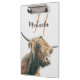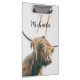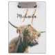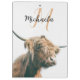 Highland cow portrait custom name initial monogram. Portrait photograph of a majestic orange brown highland cattle on a foggy day with white background.