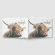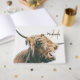 Highland cow portrait custom name initial monogram. Portrait photograph of a majestic orange brown highland cattle on a foggy day with white background.