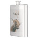 Highland cow portrait custom name initial monogram hip flask