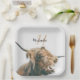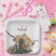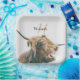 Highland cow portrait custom name initial monogram paper plate