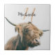 Highland cow portrait custom name initial monogram. Portrait photograph of a majestic orange brown highland cattle on a foggy day with white background.