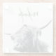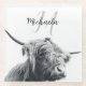Highland cow portrait custom name initial monogram in black and white. Portrait photograph of a majestic highland cattle on a foggy day with white background in black and white.