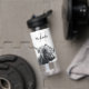 Highland cow portrait initial monogram black white water bottle