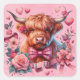 Highland Cow Surrounded By Pretty Flowers Square Sticker