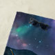 Beautiful Highland cow surrounded be luscious green Mountains and colourful nebulas in the sky.
