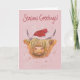 highland cow wearing Christmas hat pastel pink Holiday Card