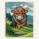 Highland cow cartoon wearing Campbell tartan scarf. Custom background landscape on both covers. Custom text.