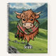 Highland Cow with Scott Red Tartan Scarf Notebook