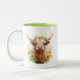 Highland Cow with Yellow Sunflower Flower Crown Two-Tone Coffee Mug