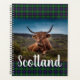 Stylish planner for keeping events and appointments at your fingertips. Features Scottish Highland steer photograph with large customisable "Scotland" text overlay. Background is Highland's Clan Sutherland tartan pattern