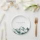 Add a scenic touch to your wedding reception with this beautifully designed paper plate featuring hand-painted watercolor mountains and sleek modern text. Created by Redwood & Vine Design Co., this disposable plate is perfect for rustic weddings, outdoor gatherings, or mountaintop celebrations. Personalise with your wedding details for a stylish and convenient table setting that enhances your natural theme. Ideal for dessert tables, welcome dinners, or casual receptions.