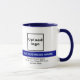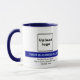 Emphasise your business name. Highlight it. Navy blue combo mug that you can customise to put your business name with highlight. Customisable mug that you can use in your coffee shop, diner or restaurant business to build brand name awareness while your customers enjoy sipping the aromatic and tasty coffee or tea that you served to them. Mug as promotional product, giveaway item or gift to your customers or clients, a marketing strategy to advertise your business or to promote your brand. To customise this mug, upload your business logo, type your business name, address and phone number. Please check the appearance on front and back sides after uploading logo and typing texts. If the appearance is pleasing to you, you can place your order now. If you need to resize and move the logo and texts to fit on this mug or on the size and style that you will choose, please change in the design tool. You can also make other changes according to your preference in the design tool such as changing the highlight colour, font colour and font style.