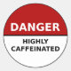 Danger - Highly Caffeinated - warning sticker in red, white and black.