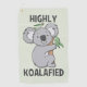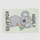 Highly Koalafied - Highly Qualified. A cute gray Koala cartoon graphic drawing with a koala bear pun. Funny and sweet wild animal design. Australian wild baby animal on a eucalyptus tree with gum leaves
