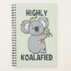 Highly Koalafied - Highly Qualified. A cute grey Koala cartoon graphic drawing with a koala bear pun. Funny and sweet wild animal design. Australian wild baby animal on a eucalyptus tree with gum leaves