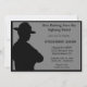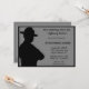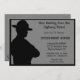 Retirement invitation for a Highway Patrolman with a silhouette of a patrolman. The background is grey and black. The back side has a highway patrol hat and hand cuffs. Easy to customise with your party details.