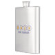 The product is a good size and came exactly as it was pictured. The lid is not attached to the flask, which could be dangerous on drunken nights... The print came out surprisingly well and looks very sharp. Would definitely recommend.