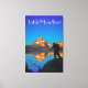 Stylised art of hiker overlooking Thousand island lake and Banner Peak at sunrise with "John Muir Trail" text. California, Sierra Nevada Mountains, Ansel Adams Wilderness, Thousand Island Lake. John Muir Trail Mile 044.