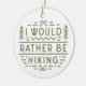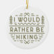 Hiker funny quotes I would rather be hiking. Retro vintage green forest aesthetic hike lover sarcastic humor themed home decor holiday season Christmas tree white ornament.