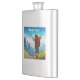 The product is a good size and came exactly as it was pictured. The lid is not attached to the flask, which could be dangerous on drunken nights... The print came out surprisingly well and looks very sharp. Would definitely recommend.