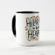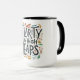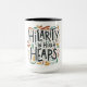 Whimsical and playful: The text "Hilarity in High Heaps" is written in a colourful, hand-lettered style with whimsical doodles and accents. The design is fun and lighthearted, and would be perfect for a child's mug