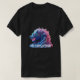 I give wanted to give this a 4 instead of a 5 because these Basic DARK T0shirts run unexpectedly SLIM or Narrow. Which is great if you do not have a potbelly, but I have a paunch. It isn't the shirt's fault that I've got a beer belly. The design and shirt itself is a quality cotton shirt. The color is more of a deep purple, but still a very pretty color. The Basic DARK T-shirts run a bit SLIMMER than the Basic Ts. The neck is a fraction narrower (or seems to be narrower) also. I'm a paunchy middle-aged woman and my neck is 12 inches (31cm) thick and the neckline fell about the same as in the photo of the man, and I had the desire to tug it a bit. So if you're a thick necked man or like loose shirts, be aware these are slimmer shirts. Once I get rid of my lockdown paunch it'll look great. The shirt washed well in cold water with no apparent bleeding. We don't have a dryer, so it hung dry. Did not shrink. Love the colors and the design. The design looks smaller on my shirt than it does on the model on-line. But still, it looks good on the shirt. The printing looks as it does on the model, just the size seems fractionally smaller. Washed garment in cold water, hung dry and design appeared unaffected.
