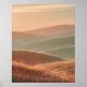 This stunning golden-hour landscape photograph showcases undulating hills in warm amber, soft teal, and earthy browns, with delicate wild grasses catching the low sunlight. The layered, misty horizon creates a peaceful, almost painterly sense of depth and calm.