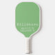 Stylish pickleball paddle with Hillsboro Oregon longitude and latitude coordinates in vintage typewriter font on light green background.