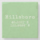Stone coaster with Hillsboro Oregon longitude and latitude coordinates in vintage typewriter font on light green background