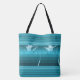 Teal colorway. Swaying palms trees play against a background of graphic stripes in this print reminiscent of the designs used in vintage Hawaiian aloha shirts and board shorts. This design comes in several colorways.