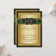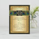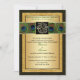 Was your love written in the stars? This dramatic black and gold wedding invitation has a central black and gold FAUX engraved look medallion with the Hindu god Ganesh on it, lying over top of a band of richly coloured peacock feathers on it. There is also a gold PRINTED glitter border on it, and customisable black and green text that you can personalise to suit your occasion. The Hindu wedding quote by Rabindarath Tagore is a beautiful belief that says: "I seem to have loved you in infinite forms, infinite times, in life after life, in age after age forever". There are also text boxes on the back for you to add any additional text to. Be sure to delete them if you don't need them. ****PLEASE NOTE that none of the elements on this invitation are raised or embossed. Everything is printed flat. This invitation would be perfect for a spring, summer, fall, or winter Indian, Hindu, Sanskrit, or Muslim wedding ceremony, and would also work well for other formal events requiring class and taste. ALSO, if you re-size the invitation, or if you change fonts, or the size of the font, some of the design and/or text may get cut-off. Everything will print as you see it on your monitor. I will not see your invitation, and Zazzle will NOT correct anything (typos, alignment etc.). The text and paper is all customisable. If you need help with this invitation, please email me BEFORE you place your order. If you require any other matching items, or would like any other design elements added to it, such as a symbol etc., or if you need it in another language, please email your request to niteowlstudio@gmail.com.