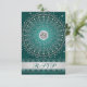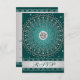 This dramatic teal green and silver grey wedding r.s.v.p. card has a removeable central silver FAUX engraved look medallion with the Hindu god Ganesh on it, along with a large central silver grey scroll circle pattern on it with ornate swirled hearts detailing on it with silver stars and dots that lay over top of a deep teal background with another layer of fine bright aqua blue swirls and scrolls on it that match the wedding invitations shown below. ****PLEASE NOTE that none of the elements on this invitation are raised or embossed. Everything is printed flat. This invitation would be perfect for a spring, summer, fall, or winter Indian, Hindu, Sanskrit, or Muslim wedding ceremony, and would also work well for other formal events requiring class and taste. It is shown here on basic paper. If you want a heavier weight paper, I suggest the metallic ice or champagne paper, which would give it a lovely opalescent lustre. I do NOT suggest using the metallic gold paper, as it is a very dark brassy gold that will really alter the design. ALSO, if you re-size the invitation, or if you change fonts, or the size of the font, some of the design and/or text may get cut-off. Everything will print as you see it on your monitor. I will not see your invitation, and Zazzle will NOT correct anything (typos, alignment etc.). The text and paper is all customisable. If you need help with this invitation, please email me BEFORE you place your order. If you require any other matching items, or would like any other design elements added to it, such as a symbol etc., or if you need it in another language, please email your request to niteowlstudio@gmail.com.