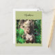 Postcard adorned with a lovely goddess surrounded by trees and greenery in the jungle.