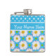Hip Flask to Personalize: Polkas, Daisies on Blue