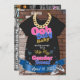 Ooh Baby Baby...Kick it Old School! Throw a Co-Ed Couples Hip Hop Gender Reveal /PUSH Party to celebrate the arrival of your Lil Hip Hop Prince or Princess! Features Cute Black bodysuit with fly gold chain, chequered sneakers on a graffiti brick background