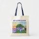 Hip Hoppy Easter Bunny tote bag with our fun and colourful artwork of a geometric patterned bunny hopping through a grass and flower filled backyard wtih a brick wall, trees a sunny spring sky and hidden decorated Easter Eggs. Our playful art of the Easter bunny and colourful eggs on a reusable shopping bag is a perfect way to collect your Easter eggs while on an Easter egg hunt this year. This cute rabbit art was digitally painted by our talented children's book illustrator, Traci Van Wagoner, and is perfect for anyone who loves rabbits, bunnies, bunny rabbits, farm animals, barnyard animals, Easter, decorated Easter Eggs, spring, and colourful artwork. With the customisable words, Hip-Hoppy Easter, at the top, this colourful Easter Egg bag makes a great gift for the holiday. Substitute the Easter egg basket for a reusable bag!