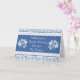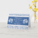 A very pretty 'Get Well Soon' card for someone undergoing Hip Surgery. The text is white on Indigo Blue and the card is decorated with a floral pattern in Blue on White, a faux lace edging and white lacy floral motifs, from a hand-drawn design by Judy Adamson.