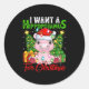 Hip Xmas Lights Funny I Want A Hiptamus For Christ Classic Round Sticker