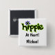 Show that you are a hippie at heart with this name badge that you can wear to introduce yourself at parties, meetings, and other fun events or wear to work. Revive this era with this whimsical word art " hippie " in black and outlined in bright lime green on a white background that you can change. The customisable words "at Heart" are below the word Hippie. Personalise with your name across the bottom or remove if you just want to wear the Hippie badge pin. The colourful and stylish graphic word hippie has the first i dotted with a flower, outlined in lavender purple in a whimsy 70's style. Celebrate the hippie attitude and way of life and with fun with a retro throwback to the late 60's and early 70's with style. The colours are black, lime green and lavender purple. Fully customisable to make it your own. Original art is by Phyllis Dobbs.