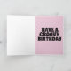 This card is great fun and good quality. I loved the humour inside and on the back. There is the opportunity to change the orientation of this card from landscape to portrait, which I did. It is relatively straightforward to amend the typeface to fit the new orientation. It was well packaged with no plastic. The printing on this card is excellent.