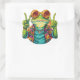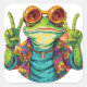 Spread peace and positive vibes with our hippie frog peace sign sticker. This colourful sticker features a whimsical frog holding up two fingers on each hand in a peace sign gesture. With its vibrant design and peace-loving spirit, this sticker is perfect for adding a touch of groovy charm to your belongings.