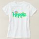 Proclaim your hippieness with this tee shirt with the whimsical word art hippie in turquoise aqua blue and outlined in bright lime green. The colourful and stylish graphic word hippie has the first i dotted with a flower, outlined in lavender purple in a whimsy 70's style. Celebrate the hippie attitude and way of life and wear it for fun as a retro throwback to the late 60's and early 70's. The colours are turquoise aqua blue, lime green and lavender purple. Fully customisable to make it your own. Original art is by Phyllis Dobbs.