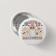 Cute, colourful, fun Hippie Halloween button features a hippie ghost with pink witch hat, text that reads Hippie Halloween, and some flowers and little bats and skulls in lavender, melon, aqua, and pink!
