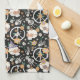 Hippie Halloween Skulls and Flowers Pattern Tea Towel