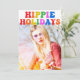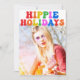 Hippie Holidays. Customise your cute hippie holiday card with this funky 70s text in fun rainbow colours. A colourful hippy Christmas card with your vintage family photo.