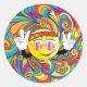 Retro 70's inspired pattern with a hippie emoji. Peace, love and happiness.