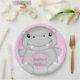 Cute hippo baby shower with a pink background is great to celebrate a baby girl on the way! Great for a safari or zoo theme party!