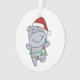 The hippo at Christmas with fairy lights. Funny animals with gifts and snow for the holidays. A sweet Christmas greeting. Hippos are cute animals and perfect for Christmas.