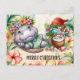 Hippo Hawaii Christmas Greeting Holiday Postcard