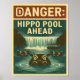 Warning: hippos ahead! This poster is a playful tribute to a river adventure, featuring hippos and a bold vintage-style warning sign. Designed with retro flair and theme park humour.